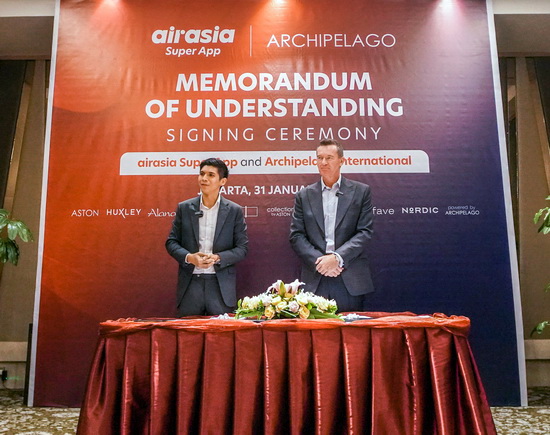 airasia Super App mengumumkan kemitraan langsung dengan salah satu grup manajemen perhotelan terbesar di Asia Tenggara, Archipelago International melalui penandatanganan Memorandum of Understanding (MOU) yang berlangsung pada 31 Januari 2023 di The Grove Suites by GRAND ASTON, Jakarta. Hadirnya kemitraan strategis ini telah memperluas portofolio airasia Super App dengan ketersediaan lebih dari 40,000 kamar di lebih dari 200 destinasi seluruh Asia Tenggara, Karibia, Timur Tengah, dan Oseania.