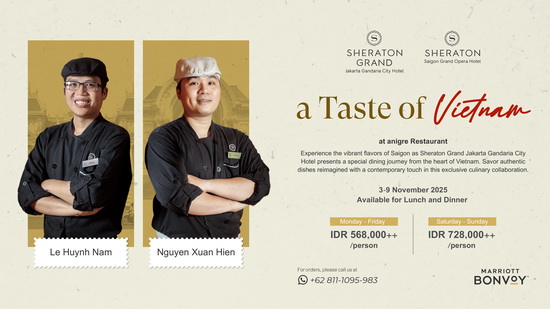 “Kolaborasi ini mengukuhkan hubungan global Sheraton melalui kekayaan budaya makanan,” ujar Ferdian Tobing, Executive Chef Sheraton Grand Jakarta Gandaria City Hotel. “Taste of Vietnam mengajak para tamu untuk menjalani pengalaman rasa yang otentik dan teknik kuliner bersejarah yang membuat masakan Vietnam dicintai di seluruh dunia”