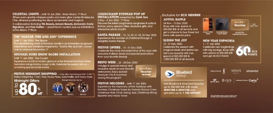 Tak hanya itu, Senayan City juga menghadirkan Festive Offers dari 13–31 Desember dengan berbagai promo spesial dari tenant favorit, serta Resto Week pada 20–28 Desember yang menawarkan menu khusus dan penawaran eksklusif di restoran pilihan, termasuk Senayan City E-Voucher.