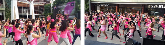 Besarnya komunitas olahraga bersama di Celebrity Fitness seperti di kelas Zumba mau pun Body Combat berarti Celebrity Fitness mampu secara eksklusif menawarkan pengalaman olahraga bersama dengan peserta terbanyak di Indonesia yang dapat memberikan motivasi yang besar bagi pasien kanker payudara yang seringkali merasa terasingkan di masa pemulihan tubuh mereka. Seperti yang diselenggarakan di semua klub Celebrity Fitness, di acara hari ini semua member dan staf di klub memakai baju berwarna pink untuk menghormati dan mendukung mereka yang sedang memerangi kanker payudara.