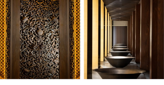 Sistem aliran air tersebut mengalir menuruni tebing bebatuan yang mengapit himpunan anak tangga dan menjadi ikon spektakular pilar dari resor ini. Desain megah dengan 250 anak tangga yang mengadopsi konsep Pura Besakih, semakin mempertegas esensi Bali. Bagian arsitektur ini juga akan digunakan sebagai panggung untuk menampilkan ritual sebagai penanda senja.