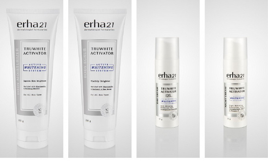 Sebagai rangkaian yang lengkap ERHA TruWhite Series juga memiliki produk pencerah untuk merawat tubuh, yang terdiri dari: (1) TruWhite Activator Body Scrub dengan bahan Active Whitening System untuk mencerahkan warna kulit secara nyata. Scrubnya yang unik dan lembut di kulit, berfungsi mengangkat sel kulit mati dan menjadikan kulit halus dan sehat; (2) TruWhite Activator Body Moisturizer yang cocok untuk semua jenis kulit dan berfungsi mencerahkan warna kulit secara nyata dan menjaga kelembapan kulit tubuh.