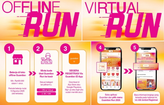 "Tahun ini kami kembali dengan semangat yang lebih besar untuk menghadirkan pengalaman lari lebih interaktif dan inklusif. Melihat antusiasime peserta di tahun kemarin, akhirnya kami hadirkan format virtual run dalam kategori yang sama dengan format offline, yakni 5K dan 10K," ungkap Malvin Tarigan, Head of Marketing Guardian Indonesia.