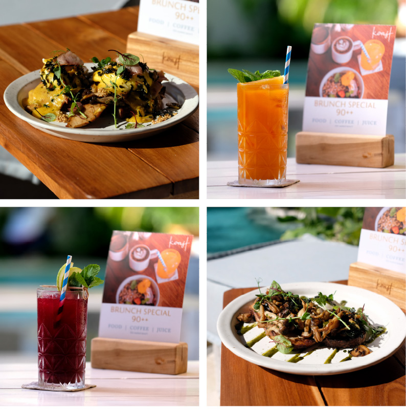 All Day Brunch bergaya Australia disajikan setiap hari dari pukul 8 pagi hingga 4 sore, dengan menu-menu favorit seperti Salad dan Poke, juga pilihan menu makanan savory seperti Truffle Folded Eggs, Wild Mushrooms on Koast, Crispy Skin Salmon, dan masih banyak lagi. Salah satu paling favorit adalah Egg Benny, yakni telur yang di-poach dan disajikan dengan beragam topping dan nama menarik seperti Koast Original, Smoked Salmon, dan Grilled Asparagus.