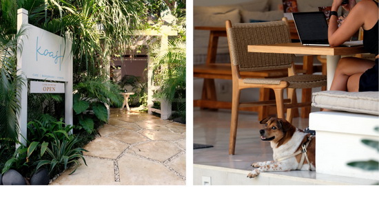 Lewat dari gerbang, tamu akan disambut suasana taman yang asri dengan warna putih yang dominan. Pilihan duduk tersebar di beberapa area yang semuanya semi-outdoor, yang dalam suasana masih pandemi ini biasanya lebih diutamakan. Selain itu Koast menghadirkan suasana yang lebih tenang dibanding tempat-tempat yang sudah populer. Ideal buat mereka yang tidak hanya mencari tempat hangout, tapi juga sedang “Work from Bali”.