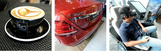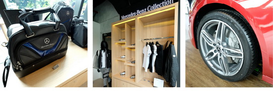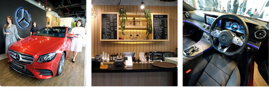 Sambil menikmati aneka minuman kopi, teh dan makanan ringan, pengunjung café bisa melihat langsung kendaraan Mercedes-Benz yang terpajang di dalam area cafe, dan seandainya model yang diinginkan tidak dipajang, melalui teknologi Virtual Realit bisa merasakan interior dan eksterior semua model Mercedes-Benz yang dijual saat ini. Selain minuman dan makanan, dalam area She’s Mercedes Café juga dijual berbagai produk Mercedes Collection mulai tas, baju, mobil miniatur hingga gantungan kunci. She’s Mercedes Café ada di lantai dasar dan buka Senin-Jumat dari pukul 8 pagi hingga 7 malam.