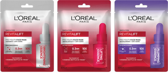 L’Oréal Paris Pro Youth Face Mask hadir dalam 3 pilihan, Brightening, Lifting dan Plumping yang mengandung Hyaluronic Acid. Ketiganya menggunakan teknologi Advance Cellulose Tissue Mask, Japanese cotton dan memiliki kekuatan melembapkan yang setara dengan satu botol serum dalam satu masker. Inovasi face mask dari L’Oréal Paris ini memiliki ketebalan 0.3 mm yang memberikan sensasi 2nd skin effect, mampu menyerap essence 10x lebih banyak sehingga mampu menghidrasi kulit dengan baik, hanya dalam waktu 15 menit untuk mendapatkan hasil kulit cerah, dan tampak lebih muda.