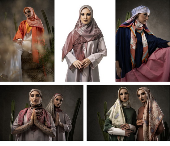 Model-model cantik berlenggok mempresentasikan kerudung segi empat yang bertajuk Selaksa Sarimbit Nusa, hasil kolaborasi karya anak bangsa yang akan membawa keindahan Nusantara ke mata dunia.