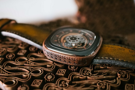 Keris dengan pola pamor yang khas digunakan sebagai penunjuk waktu menit dan dibuat dari baja Damascus. P2B/05 adalah model pertama SEVENFRIDAY yang menggunakan penunjuk waktu serupa. Jika diperhatikan dengan cermat, penunjuk waktu jam pun menyerupai Keris.
