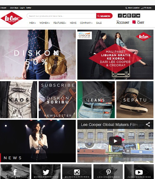 Berbelanja koleksi Lee Cooper kini semakin mudah karena Lee Cooper menghadirkan situs e-commerce untuk para pelanggan. Kini situs tersebut siap melayani seluruh pelanggan setia di manapun berada di Indonesia. ...